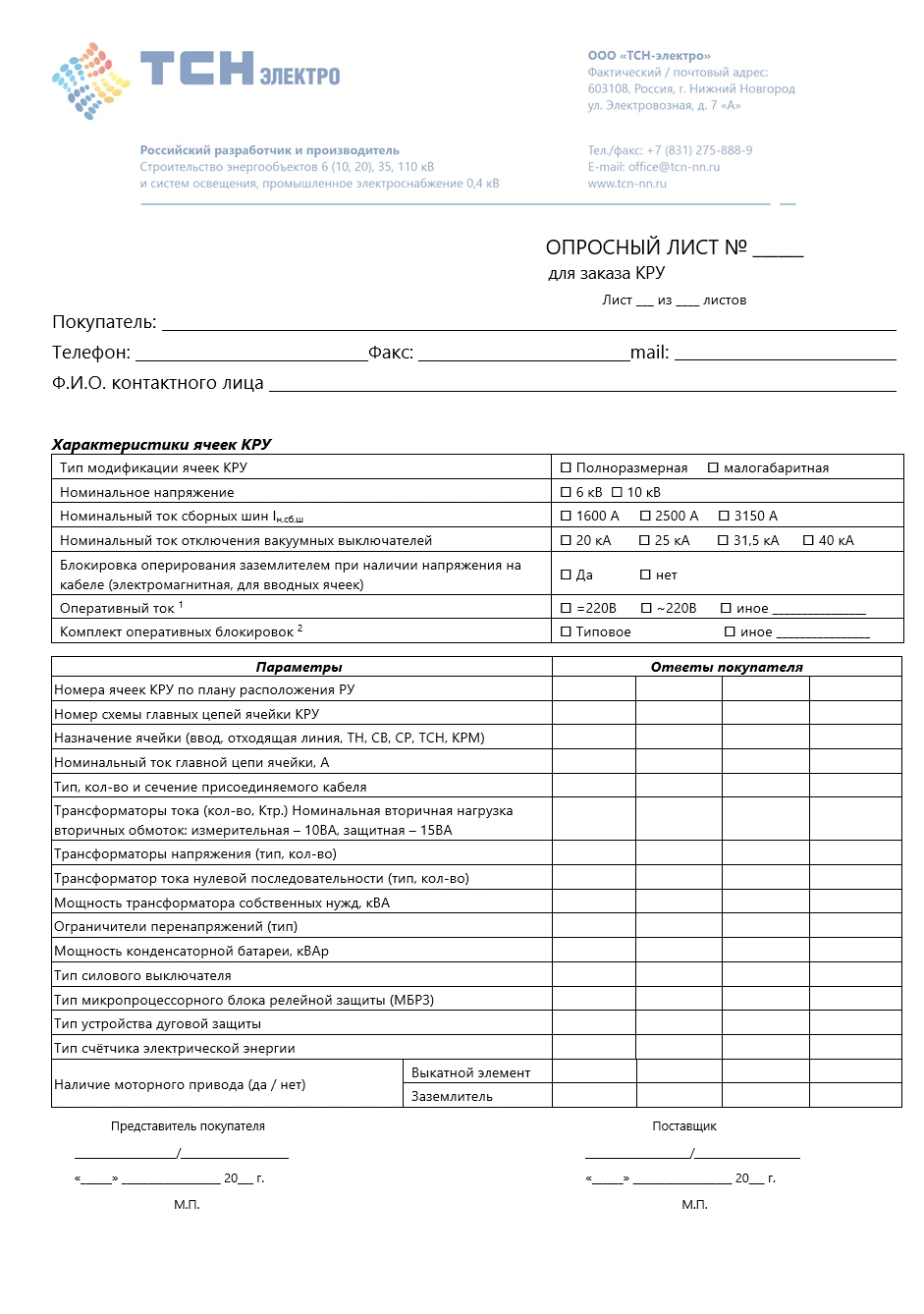 Декларация о соответствии КТП до 35 кВ требованиям ГОСТ