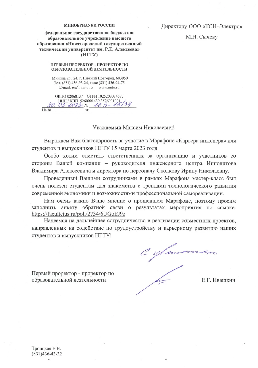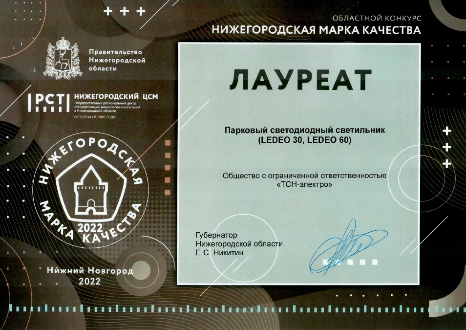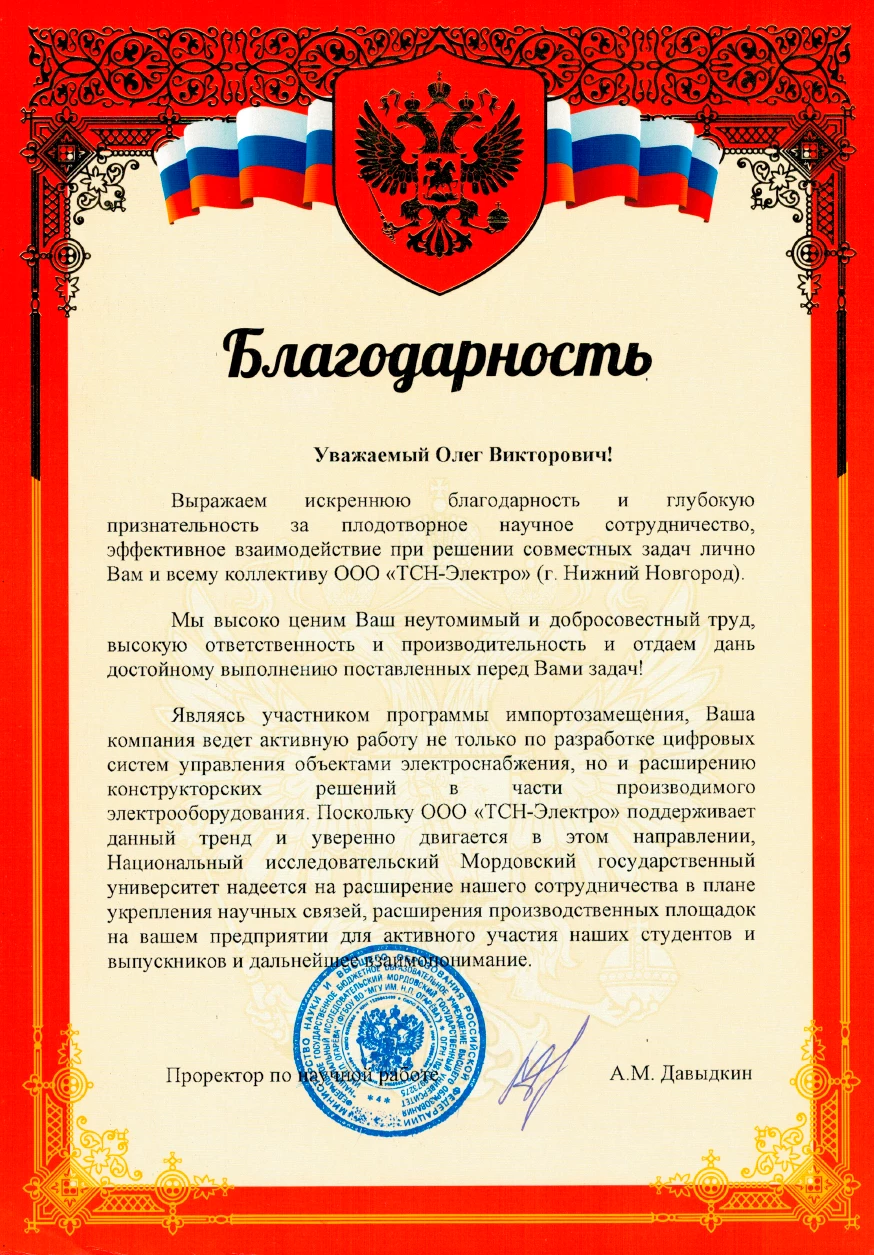 Благодарственное письмо за развитие спорта в Нижнем Новгороде