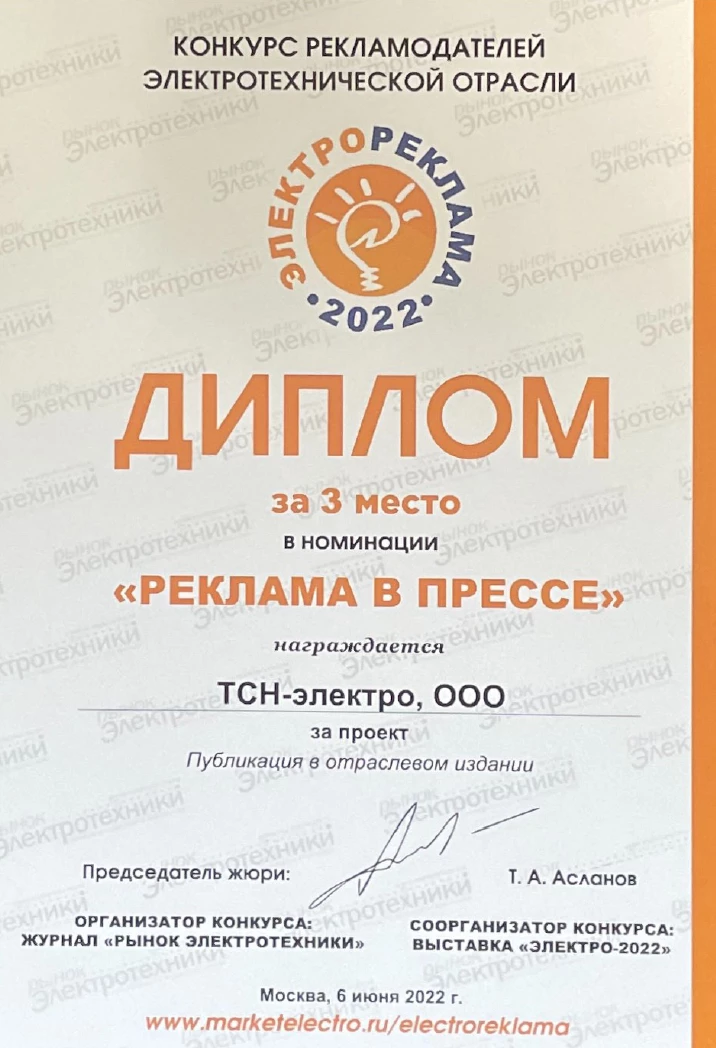 Диплом за доклад Инновационные возможности мониторинга распределительных устройств