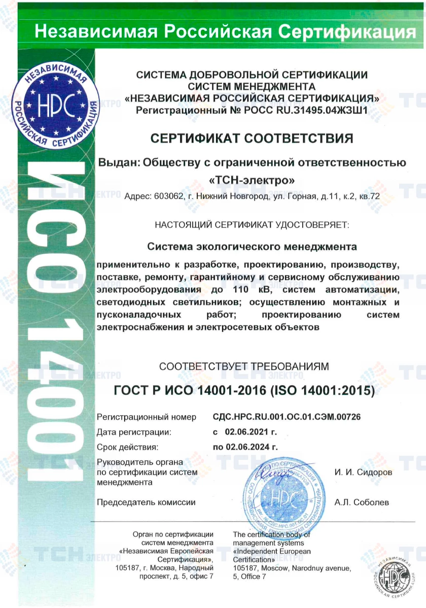 Сертификат соответствия соответствия системы экологического менеджмента требованиям ГОСТ ISO 14001_2016