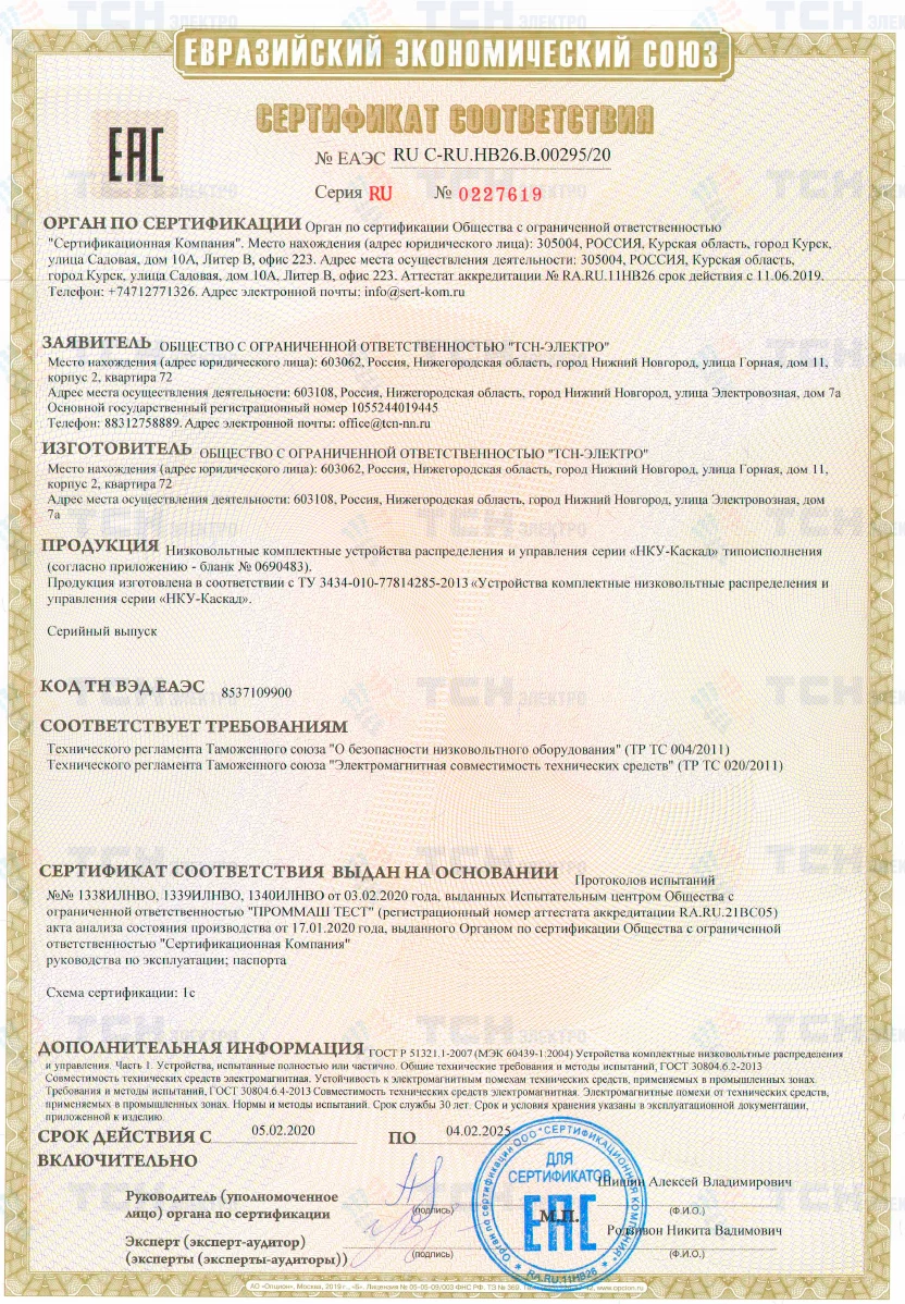 Сертификат соответствия НКУ-Каскад требованиям ТР ТС_лист 1