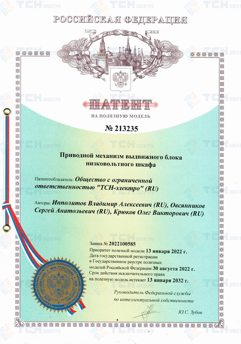 Патент на полезную модель «Разъем втычной силовой низковольтного шкафа»
